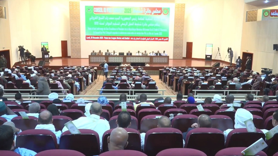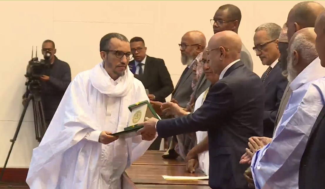 شهد رئيس الجمهورية، محمد ولد الشيخ الغزواني، صباح اليوم، حفل توزيع جائزة شنقيط للعام 2025، بالمركز الدولي للمؤتمرات "المختار ولد داداه".