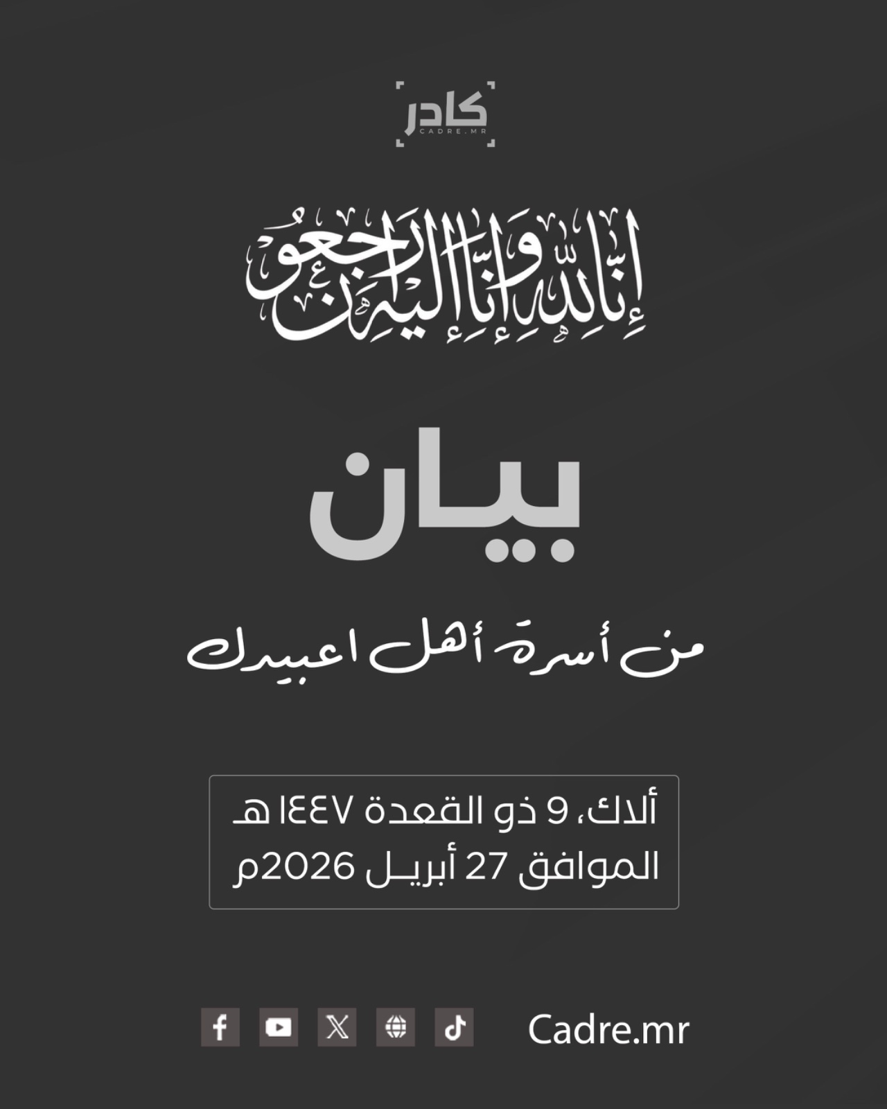 وإن أسرتنا، أسرة أهل اعبيدك، لتتقدم بخالص الشكر وعظيم الامتنان لكل من واسانا من أهلينا وأصدقائنا ومحبينا في هذا المصاب الجلل؛ سواء بالحضور وتكبد عناء السفر، أو عبر الاتصال والمراسلة. كما نتوجه بجزيل الشكر والتقدير إلى السلطات الإدارية والأمنية والقضائية والصحية في الولاية، وعلى رأسهم السيد والي الولاية، على ما أبدوه من مواساة واهتمام.
