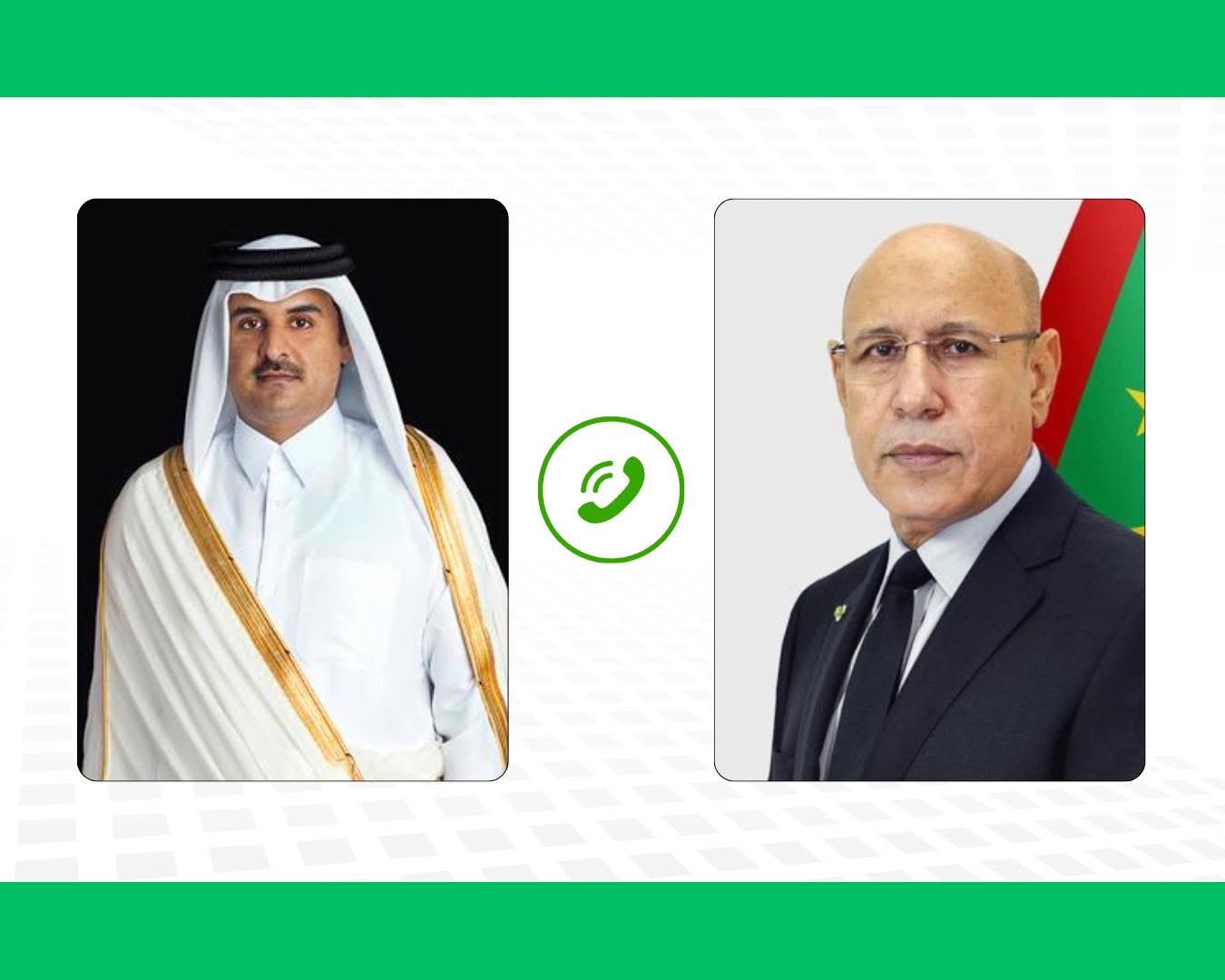 هاتف رئيس الجمهورية، محمد ولد الشيخ الغزواني، مساء اليوم، أمير قطر تميم بن حمد آل ثاني، معربا عن تضامن موريتانيا مع دولة قطر عقب الاعتداء الإسرائيلي على الدوحة.