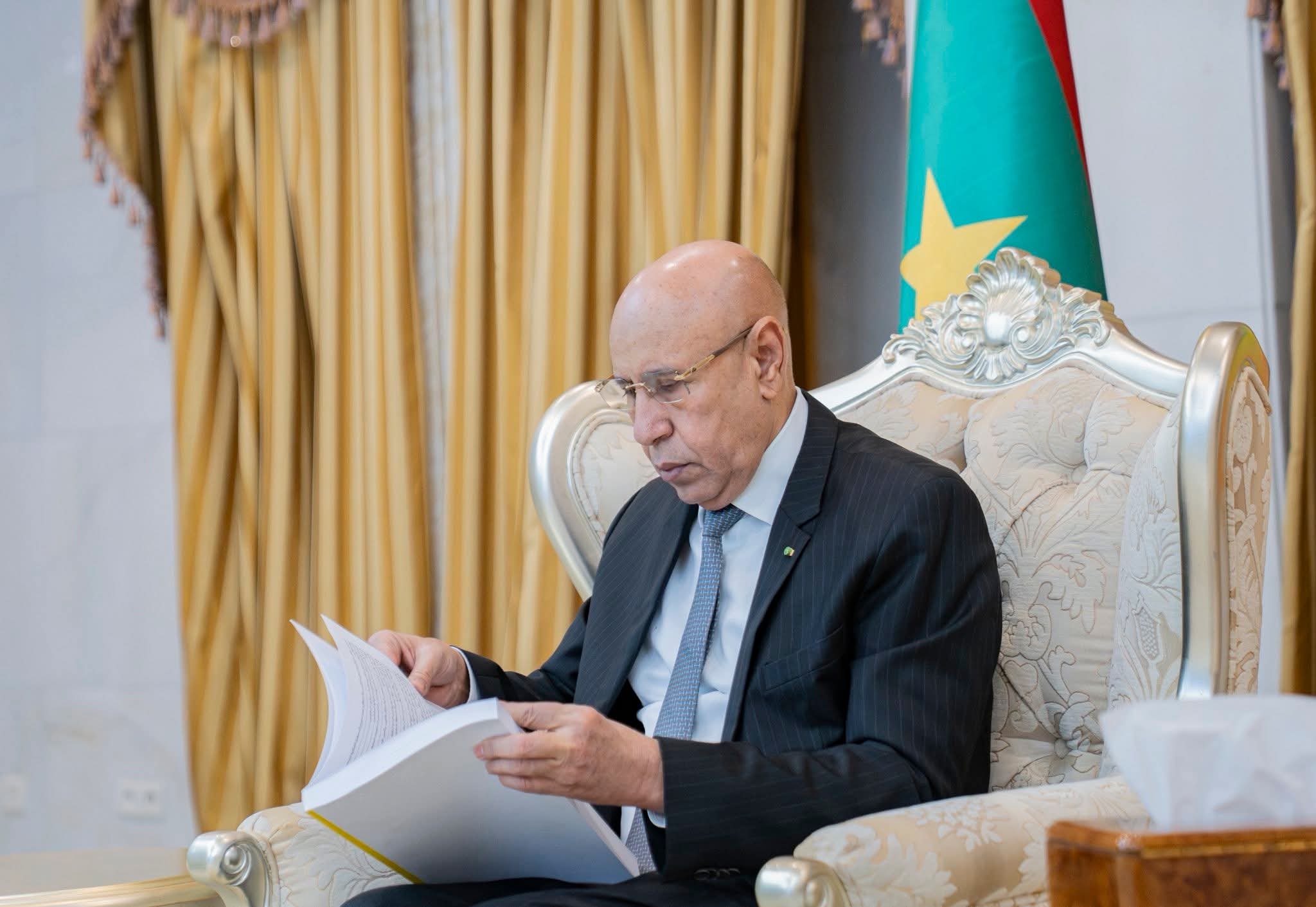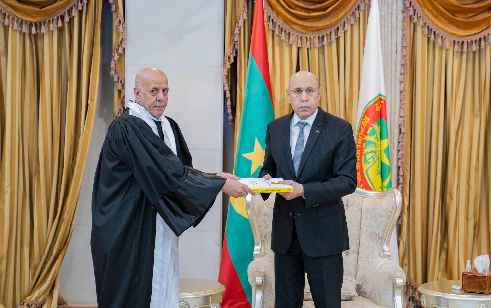 تسلم رئيس الجمهورية، محمد ولد الشيخ الغزواني، اليوم، التقرير السنوي العام لمحكمة الحسابات من رئيس المحكمة، حميد ولد أحمد طالب.