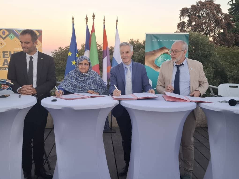 ووقعت بنت عبد المالك، الاثنين، اتفاقية منحة لتمويل مشروع جهة نواكشوط لتحسين الولوج للماء والصرف الصحي على هامش مشاركتها في النسخة الثانية من المنتدى الأوروبي الإفريقي، في مونبلييه الفرنسية.