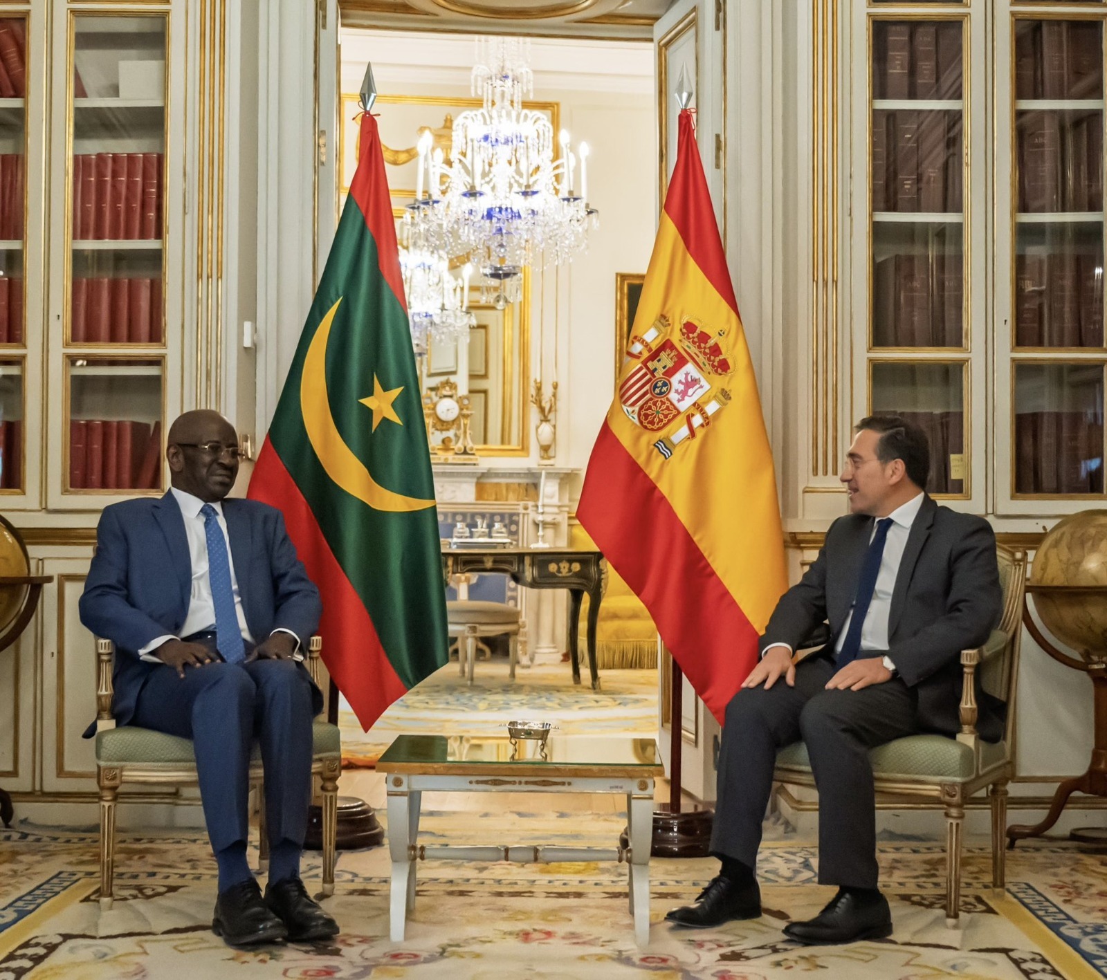 عقد وزير الخارجية، محمد سالم ولد مرزوك، الاثنين، بالعاصمة الإسبانية مدريد، جلسة مباحثات مع نظيره الإسباني، خوسيه مانويل ألباريس.