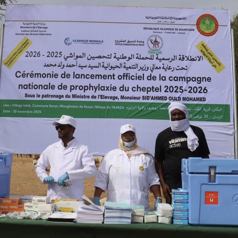 أطلق وزير التنمية الحيوانية، سيد أحمد ولد محمد، أمس الأحد بروصو، الحملة الوطنية لتحصين المواشي 2025/2026.