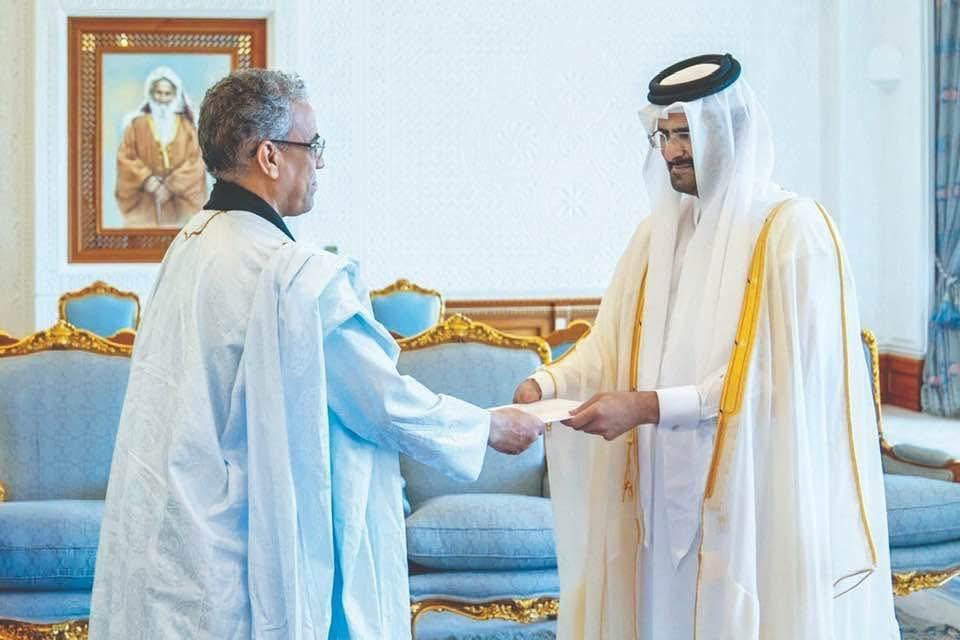 Sep 24 / التعليقات اعتماد ولد ببانه سفيرا لموريتانيا لدى قطر بواسطة Ahmed قدم السفيرُ محمد ببانه أمس الثلاثاء بالديوان الأميري بالدوحة، أوراق اعتماده إلى نائب أمير دولة قطر، الشيخ عبد الله بن حمد آل ثاني، بوصفه سفيرا لموريتانيا لدى قطر.وكان ولد ببانه يشغل منصب سفير موريتانيا في ليبيا، وسبق له أن عمل قنصلاً لها في جدة. أربعاء, 2025/09/24 - 22:23